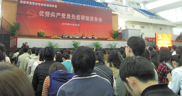 | 10月22日(星期五)上午,我院40名党员师生参加了由中共云南省委高校工委组织的“云岭先锋 创先争优——优秀共产党员”事迹巡回报告会。全院21个教学院系党总支、1个市级党的基层组织建设示范点、8个院级创先争优活动示范点创建单位的部分中层干部、师生党员代表及我院组织、宣传、统战、纪委、党校、工会、团委、学生处、创先办等部门负责人和职工代表参加了报告会。