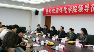 座谈会后,两院对应职能部门组织部、宣传统战部、党院办等部门负责人,自行结合校情和分管的部门经验特色互访交流、探讨。怀化学院领导在我院领导陪同下,还冒雨参观了新校园。
