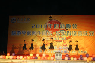 晚会在“萤火虫“摇滚乐队激情四射的音乐中拉开了序幕,劲爆的舞曲点燃了在场所有观众的热情,在观众们的掌声和呼声中,晚会节目有序的进行。晚会上有悦耳动听的歌声,有热情洋溢的舞蹈,有别具一格的民族风情。让观众大开眼界的旅游系学生的花式调酒,把晚会推向了高潮。在演出过程中还插入了抽奖环节,观众们都积极参与,这一活动又为晚会增添了一份精彩。晚会持续了2个多小时,最后晚会在阵阵热烈掌声中谢幕。