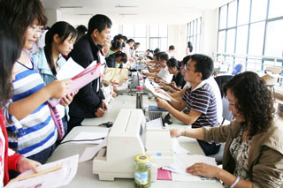 8月30日——31日是beat365英国官方网站2010级本专科新生报到入学的日子。学院党政领导,各教学院系、相关职能部门领导,新生辅导员、班主任一大早都在新校园几个新生接待点迎候新生。院领导、相关职能部门负责人在现场协调组织新生接待、报到注册、安排食宿等工作,保证整个迎新工作秩序良好,出现问题及时解决。