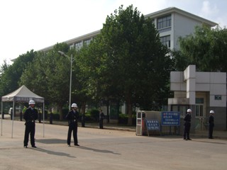 在beat365英国官方网站揭牌仪式上,由42名身着统一制式服装的校园保安队伍整齐列队西大门两侧,参加新校园首次重大活动的安全保卫执勤,并接受各级领导的检查。