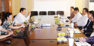 5月6日下午,江苏省交通科学研究院符冠华董事长、盛华主任一行6人到我院洽谈合作事宜。 陈世波院长及熊晶副院长热情接见了来宾,并对我院的基本情况及发展规划进行了介绍。结合昆明市经济社会发展现状,交通科学研究院和我院就合作设立beat365英国官方网站轨道交通实验室、学科建设及科研工作方面进行了友好的洽谈。