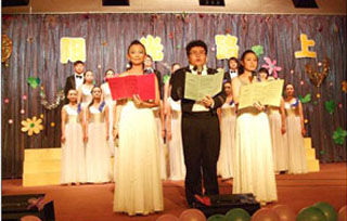 5月13日晚,音乐系题为“阳光路上”的2005级五年制班毕业汇报晚会在龙泉路校区演播厅举行。系主任靳丽芬教授、党总支副书记王耀勇老师与全系师生共同观看了演出。