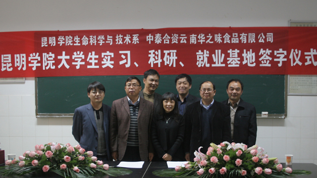 为进一步加强我系学生社会实践并促进就业工作的顺利进行, 4月2日,生命科学与技术系与云南华之味食品有限公司举行了校企合作(实习、科研、就业)的签字仪式。华之味公司总经理孙颖女士等四人,招生就业处杨宏林,生科系主任王德斌、书记翟书华及其他相关老师、2009级部分学生参加了签约仪式,仪式由生科系陈子牛老师主持。