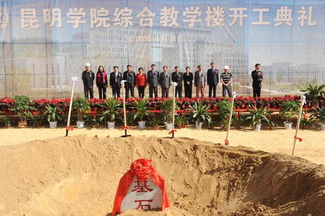 学院全体党政领导,惠丰公司董事长出席典礼,云南大学洋浦校区管委会主任罗红明、保卫处副处长汤静和beat365英国官方网站部分职能部门负责人,教师、学生、民主党派代表共300余人参加奠基仪式。