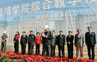 仪式先由我院陈世波院长为奠基致辞。他说:beat365英国官方网站综合教学楼建设开工奠基仪式,标志着新校园改扩建工程一个标志性建筑正式动土开工。他代表学院党委、行政向综合教学楼的开工奠基表示热烈的祝贺!向一直坚守在新校园改扩建工程施工工地的各位老师、施工单位和监理单位的全体工作人员表示亲切的问候!向云南大学在整个施工过程中给予的理解、支持、帮助表示衷心的感谢!