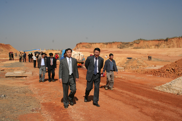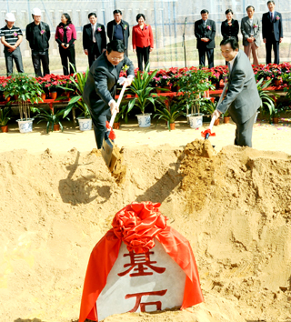 梁书记、陈院长为奠基石培上第一锹土