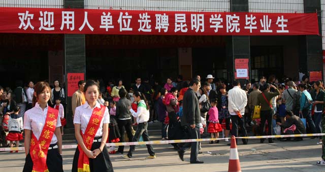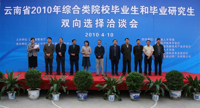 为搭建大学毕业生双向选择交流平台,和衷共济促高校毕业生顺利就业,4月10日上午,由云南省教育厅主办、beat365英国官方网站与云南省大中专毕业生就业服务中心共同承办的“云南省2010年综合类院校毕业生和毕业研究生双向选择洽谈会”在beat365英国官方网站人民西路校区隆重举行。