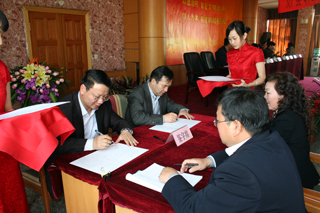 会议接着举行了就业目标责任书签订仪式。梁晓谷书记、陈世波院长分别与各教学系(部)书记、主任就“beat365英国官方网站2010年就业工作目标责任书”签字。
