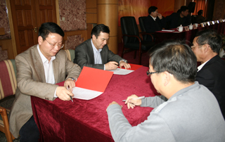 随后,学院党委书记梁晓谷和党委副书记、院长陈世波代表党委分别与各党总支(直属党支部)、部门负责人代表签订了2010年《党建工作目标考核责任书》和《党风廉政建设工作目标考核责任书》。