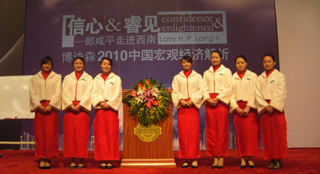 在本次活动中,我院经济系50名同学还承当了讲座的全程礼仪服务工作。同学们热情周到的礼仪服务,端庄大方的举止,给在座嘉宾们留下了美好的印象,也受到的主办方云南博迪森商务有限公司的好评。
