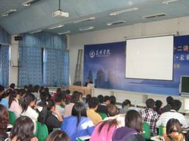 谢博士热情大方的进行了“考研规划”讲座。他主讲的内容是:全国考研基本情况介绍、往年研究生录取情况介绍、考研时间安排,并为学生提供了中国研究生招收信息网和四、六级英语、考研英语介绍等。学生们专心致志听讲,作笔记,纷纷举手提问。谢博士当场解答学生的问题,并给予宝贵建议。
