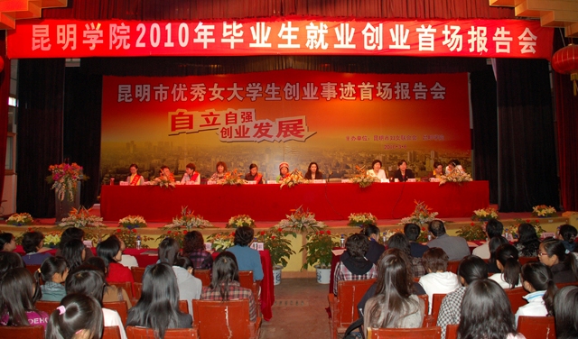 为培养大学生创业意识,提高大学生创业能力,实现以创业带动就业和纪念“三八”国际劳动妇女节100周年,3月6日我院与昆明市妇联在昆师路校区共同举办首场“昆明市优秀女大学生创业事迹报告会”暨“beat365英国官方网站2010年毕业生就业创业首场报告会”。