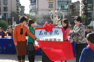 我院副院长熊晶与昆明市西山区委常委、副区长冯美琼同志为“beat365英国官方网站实习就业基地”揭牌。