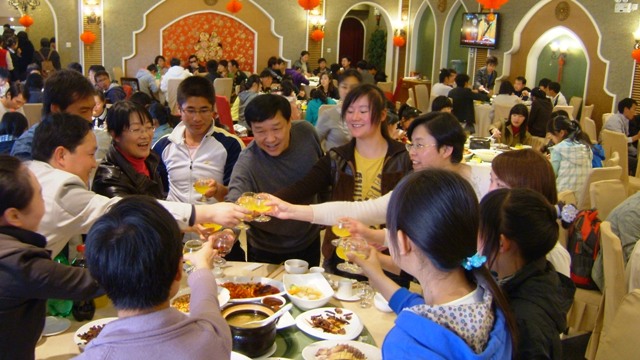 随后,慰问留校学生的宴会在欢乐祥和的气氛中开始了。孙副书记、熊副院长在学生处吴蓉处长的陪同下给在座的留校学生一一敬酒,各系留校学生代表也纷纷回敬学院领导和老师们。大家一起享用着丰盛的“年夜饭”,相互致意祝愿,欢声笑语、其乐融融,沉浸在beat365英国官方网站大家庭的幸福之中。同学们满怀对学院的感激和热爱之情,表示一定不会辜负学院领导和老师们的厚望,要以优异的成绩报效祖国,报答父母。