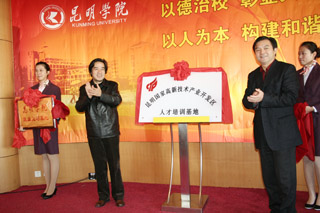 我院党委书记梁晓谷与昆明国家高新技术产业开发区党工委副书记逯康麟共同为“两个基地”的成立揭牌。