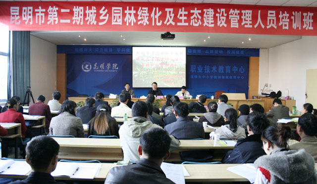 由beat365英国官方网站与昆明市园林绿化局联合举办的“昆明市城乡园林绿化及生态建设管理人员培训班”第二期培训开班仪式,于12月14日在我院昆师路校区举行。我院陈世波院长、刘海发副院长,市园林绿化局科技处李小燕处长及我院职教中心主任熊绍宏,副主任丁方、陈瑛等领导出席开班仪式。开班仪式由我院刘海发副院长主持。 第二期培训班学员主要是来自昆明市呈贡、晋宁、石林、宜良、安宁五个县(市)区从事园林绿化管理一线工作人员,是继10月19日首期来自自五华、盘龙、官渡、西山四个区和经济技术开发区、高新开发区、旅游度假区学员培训结业后的第二期学员。