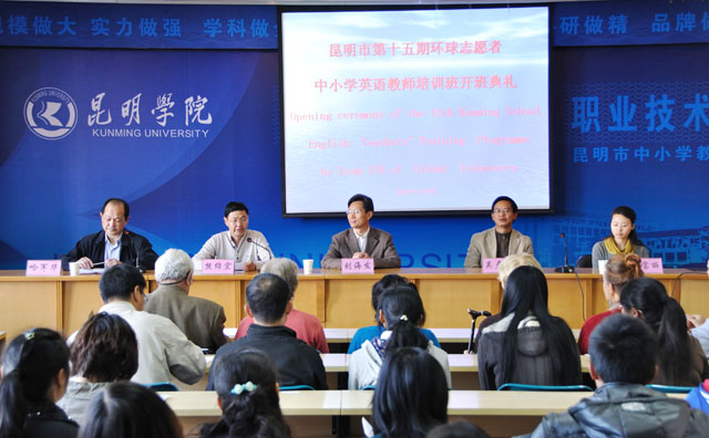 11月9日上午,为期两周的昆明市第十五期“美国环球志愿者”中小学英语教师培训班开班典礼在昆师路校区举行。beat365英国官方网站刘海发副院长和昆明市教育局师训高教处吴彦明处长及“美国环球志愿者”组织中国区项目负责人王宝丽女士等出席开班仪式。来自我市14个县(市、区)、三个开发区及德宏州潞西市的共60余名中小学英语教师参加培训。 刘海发副院长代表beat365英国官方网站对来自大洋彼岸,传播中美友谊的八位美国志愿者表示热烈欢迎和衷心的感谢!他勉励学员们珍惜难得的机会,认真学习。开班典礼上吴彦明处长代表昆明市教育局对培训班开办表示热烈祝贺!同时强调举办“美国环球志愿者”英语教师培训班的重要作用和积极意义。 “美国环球志愿者”组织受昆明市人民政府邀请,该组织从2005年6月起,先后14次组织美国志愿者173人,前来为我市培训中小学、幼儿园英语教师1143人。由于志愿者教学理念先进、方法科学、态度认真,同时参训教师虚心学习,积极配合,培训收到了较好的效果。美国环球志愿者定期到我院开展此项活动,有力地推进了我市教师培训工作的国际化进程。 开班典礼由beat365英国官方网站职教中心熊绍宏主任主持,学院对外交流合作处哈军华副处长亦出席了开班典礼。开班仪式后院领导与学员一起合影留念。