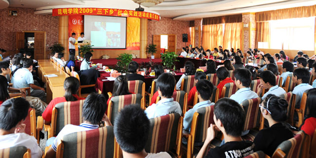 10月16日下午,院团委2009年“三下乡”社会实践活动成果汇报会在人民西路校区举行。团市委机关党总支书记王彦彦,团市委学校部部长栾丽华,学院党委宣传部张立新部长,教务处郝旭霞处长,机关党总支梁艳萍书记,保卫处方永昆副处长,学生处罗进副处长等出席了汇报会,会议由团委书记何昊宸主持。 我院本次“三下乡”根据党委宣传部、学生处、院团委联发的《关于开展beat365英国官方网站2009年大学生暑期社会实践活动的通知》的文件精神,于7月上旬正式启动,历时7天。活动以“高扬爱国主义旗帜、服务科学发展大业”为主题,本着“讲求实效、就进就便、针对性强、辐射面广、安全第一”的原则,按照“全面动员、普遍参与、点面结合、重点突破”的要求,以系为单位,结合本系专业特色,学院共组织了6支志愿服务队到昆明周边县市区基层农村开展社会实践与志愿服务活动。 汇报会上,来自自机系、旅游系、生科系、经济系、计网系、政法系的老师和学生代表,分别对此次“三下乡”社会实践活动作了汇报与成果展示。各汇报系结合系部的专业特色,开展的实践活动形式多样、成果丰富,能够用理论指导实践,用调研成果服务农村、服务社会、服务昆明的实践活动。 党委宣传部部长张立新代表学院活动领导小组讲话肯定:6个系的汇报都反映出了此次社会实践主题突出,准备充分,各系领导和相关老师高度重视,积极支持,责任心强,有的亲自带领学生到农村指导调研服务;各系结合专业特长开展科学发展观政策、普法、科普、环保宣传,进行家电维修、爱心捐赠、社会调研、参观访问、劳动体验、文体活动等,既充分认识社会和乡情,也找正自己的角色位置,以我所能服务社会,为今后发展积累经验,为学院服务地方经济发展,锻炼培养了师生干部,宣传展示了学院办学实力和育人水平,与地方建立良好合作关系,做出实绩。衷心感谢团市委领导和相关处室领导的关心支持,衷心感谢6支小分队的系领导、老师、同学的艰苦努力和辛勤奉献。 会上,团市委机关党总支书记王彦彦作了重要讲话。王书记对我院的“三下乡”社会实践工作给予了充分肯定,她指出,我院的“三下乡”社会实践活动准备充分、成果丰富,特别是通过这次活动让同学们了解了社情民意,倾听到了基层人民群众的心声,找到了奋斗和努力的方向,确实增强大学生服务社会、报效祖国责任感和使命感,发现问题、分析问题、并解决问题的能力得到了进一步的提高,砥砺了品格、磨练了意志、收获了真知、陶冶了情操、树立了理想。这次社会实践活动既是一次同学们了解社会、服务社会的尝试,更是一次理论与实践相结合的马克思主义的第二课堂。 此次“三下乡”社会实践活动是学院团委认真学习贯彻十七大精神,深入开展学习实践的科学发展观活动的重要举措,也是加强和改进大学生思想政治教育、帮助大学生在实践中深刻理解科学发展观重大意义、发挥大学生人才智力优势、服务新农村建设的有效途径。相信此次活动的开展,将为大学生体验农村、融入社会搭建平台,为我院团学工作的不断推进和现代新昆明建设贡献力量。