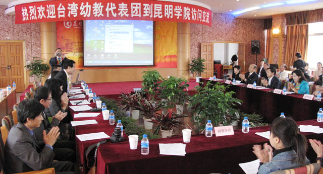 研讨会由昆明市台办主任段俐娟主持。昆明市教育局领导发言首先对台湾幼教联合总会的到来表示诚挚的欢迎,然后就昆明的教育大背景作了较详细的介绍。接着beat365英国官方网站罗明东副院长对beat365英国官方网站的建院情况,院系专业设置,未来发展方向,特别是学前教育系的发展做了重要发言。学前教育系领导唐敏副主任主要针对beat365英国官方网站学前教育系的办学历史、专业特色、科研能力、与昆明市各幼教机构的合作等台湾同行们感兴趣的问题,作了深入而细致的介绍。同时台湾幼教联合总会涂会长也把台湾的幼教发展现状等信息作了交流。