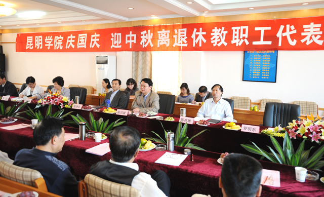 党委梁晓谷书记讲话充分赞扬肯定了各位老领导、老教授、老同志们为党和国家、为社会、为学院做出的巨大贡献。他充满感情地说:各位在座的老同志是国家、社会、学院的宝贵财富,不仅以前为国家社会培养了大批人才,而且现在仍然为社会和学院继续做着许多工作,今后也将继续发挥余热,做出更多贡献,这是党和国家不会忘记的,学院不会忘记的,全体教职工也不会忘记的。学院党政对此表示衷心感谢和敬意。当前学院虽然取得了一些成绩,但要把学院办成一所社会和大家所期望的学校,仍面临着很多困难,有着很大的距离,所以还要请各位老领导、老专家教授、老同志们继续支持关心学院发展,发挥余热,为学院发展出谋划策,多提宝贵意见。梁书记最后代表学院党政班子向在座各位致以国庆、中秋节日问候,祝大家身体健康、年年益寿、全家幸福。