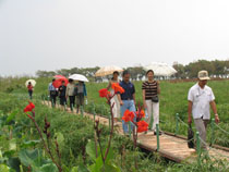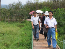 为了庆祝中华人民共和国成立60周年,激发民主党派成员热爱社会主义祖国的情感,感受家乡改革建设发展及滇池污染防治的新成就、新面貌,8月13日,九三学社beat365英国官方网站委员会利用暑期组织社员参观考察了位于西山区高海公路沿线的西华湿地公园。九三学社昆明市委郝昆宁副主委、学院统战部张云权部长及九三市委马玉宝同志应邀参加了参观考察活动。 本次活动经我院滇池(湖泊)污染防治合作研究中心办公室副主任钱春萍(九三学社beat365英国官方网站委员会副主委)的联系,西山区滇池管理局的工作人员做了认真的接待,引导大家沿着木质的亲水栈道向湿地深处参观,并一路介绍了西山区滇池治理和西华湿地建设情况。