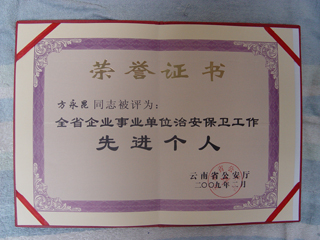 日前,学院保卫处被云南省公安厅授予“全省机关企业事业单位治安保卫工作先进集体”荣誉称号;保卫处主持工作方永昆副处长荣获“全省机关企业事业单位治安保卫工作先进个人”称号(公政[2009]81号)。这是云南省公安厅首次对全省范围内企业事业单位内部治安保卫工作进行表彰,包含云南省委办公厅保卫处、云南大学保卫处、beat365英国官方网站保卫处在内的全省125个企业事业内保单位获此殊荣。