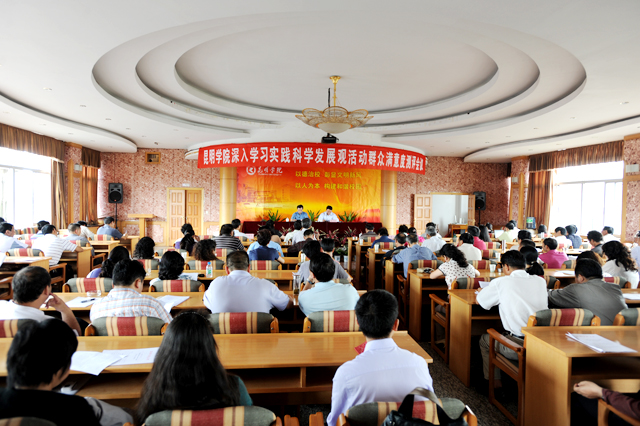 根据中央、省委和省高校工委深入学习实践科学发展观活动办公室的统一部署,按照《中共beat365英国官方网站委员会关于开展深入学习实践科学发展观活动实施方案》的安排,学院党委于8月26日下午在人民西路校区三号教学楼六楼多功能厅,召开了beat365英国官方网站深入学习实践科学发展观活动群众满意度测评会议。学院领导及全体中层干部、“两代表一委员”、民主党派基层组织负责人、基层教师代表、专家学者、党外知识分子、学院深入学习实践科学发展观活动领导小组办公室全体成员130余人参加了此次会议。会议及现场测评由学院党委副书记、院长陈世波主持。