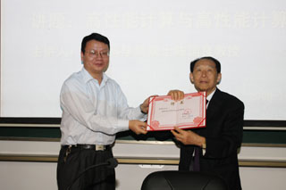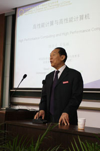 生上课。接着,陈院士从高性能计算是一个国家的综合国力的体现,是支撑国家实力持续发展的关键技术之一,在国防安全、高科技发展和国民经济建设中占有重要的战略地位的高度出发,介绍了高性能计算的含义、特点、应用需求、地位和作用;讲述了国际高性能计算机和我国高性能计算机的发展状况及应用实例;对加速我国高性能计算及高性能计算机的发展发表了意见和建议。