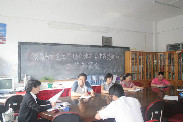 根据《beat365英国官方网站开展创建平安建设先进单位活动工作方案》的文件要求,为全面落实社会治安综合治理和维护学院稳定,创造平安、和谐、秩序良好的校园环境,争创beat365英国官方网站平安建设先进单位, 2009年4月旅游系向学院上报了创建“平安建设先进单位”的申请和工作计划,为进一步推动创建工作的深入开展,6月18日上午又召集相关人员对创建工作进行了安排和部署。