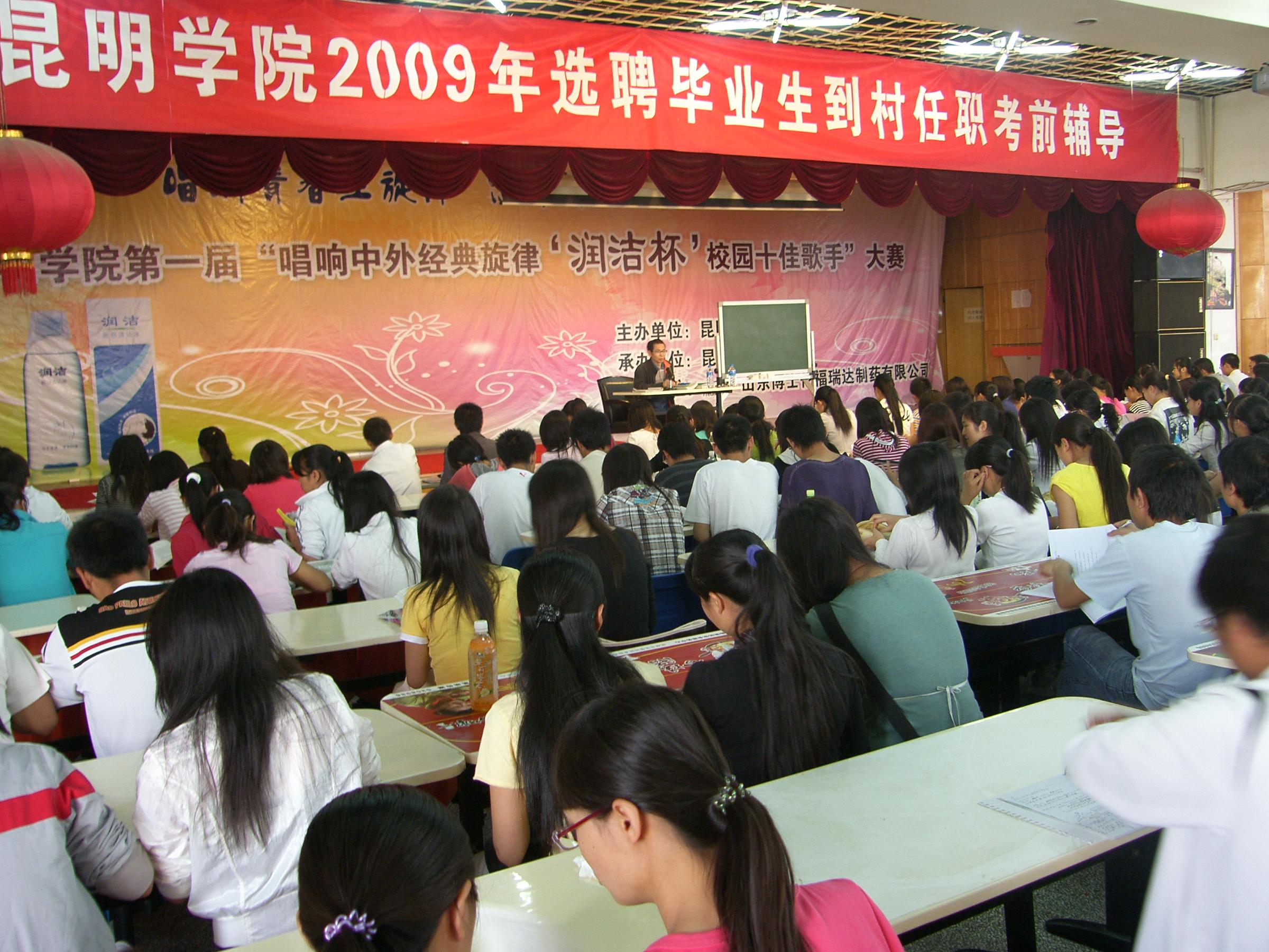 5月16日、17日,学院在人民西路校区西院食堂二楼为参加2009年到村任职选聘的毕业生集中进行了考前辅导。学院特别邀请了云南财经大学、云南大学两所院校的三位从事相关考试辅导的专家担任主讲,为参加选聘的毕业生进行免费辅导。此次参加辅导的我院学生有400多人。