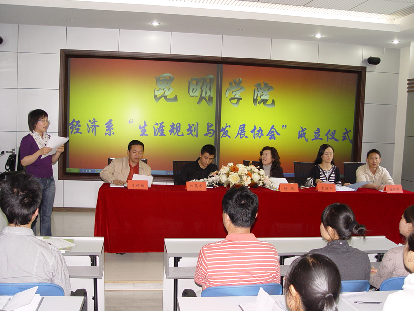经济系为全面促进我系学生就业创业,传播职业生涯发展的理论知识,引导广大学生自觉树立正确的成才观、择业观和就业观,以科学的态度规划自己的职业生涯,合理的进行职业定位,增强社会竞争力,紧紧围绕我院大学生就业、创业的中心工作,在院团委和招就处、经济系党政领导关心支持下,4月9日中午,经济系“生涯规划与发展协会”成立仪式,在经济系房地产实验室隆重举行。