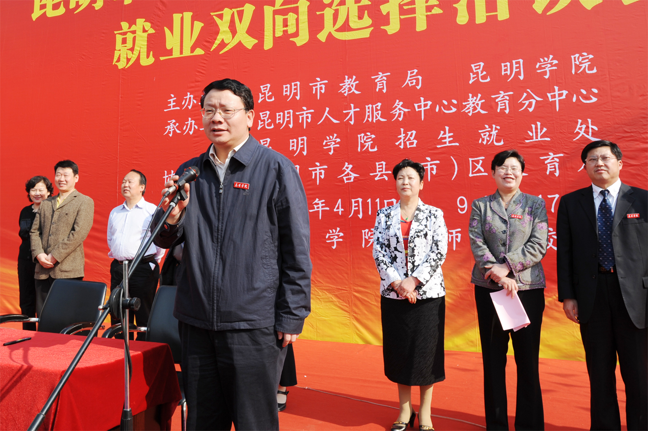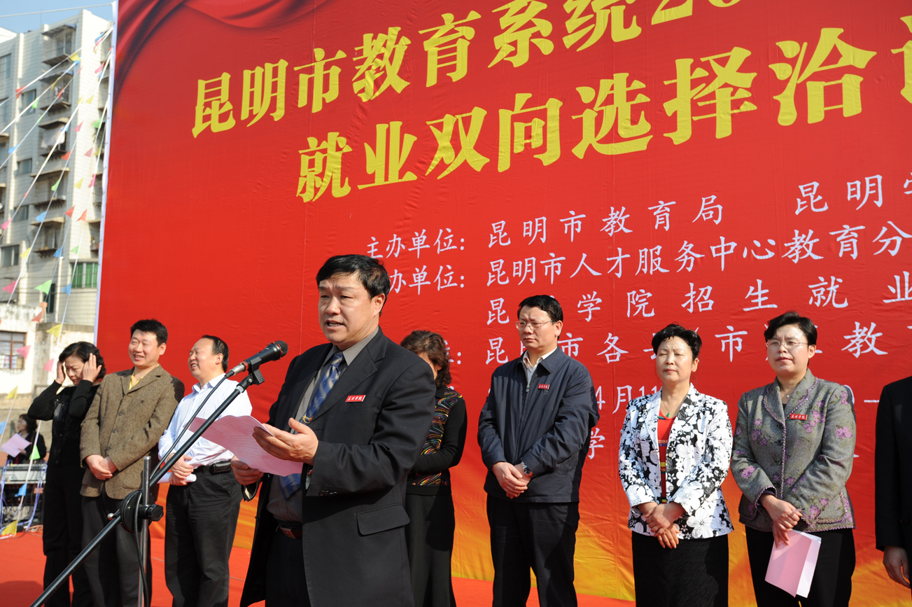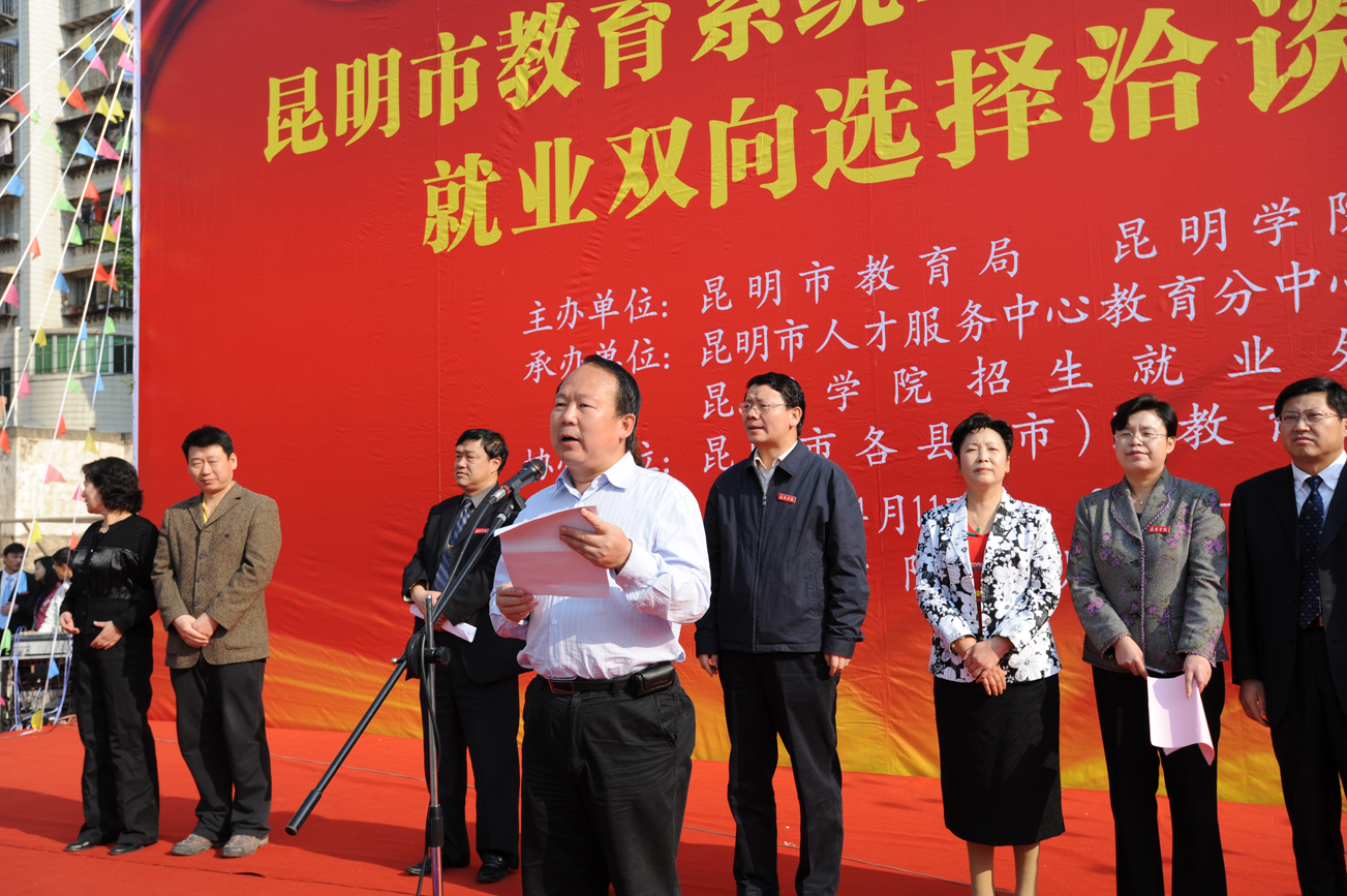 4月11日,由昆明市教育局、beat365英国官方网站共同举办的“昆明市教育系统2009年毕业生就业双向选择洽谈会”在我院昆师路校区隆重举行。云南省高校工委副书记陶晴,昆明市人大常委会副主任杨丽,beat365英国官方网站院长陈世波,学院党委副书记孙勇,副院长熊晶、罗明东和省教育厅学生处、省大中专毕业生就业服务中心,昆明市教育局、市人事局、市人才服务中心、昆明市各县(市)区教育局、人才教育分中心等相关部门领导出席洽谈会。