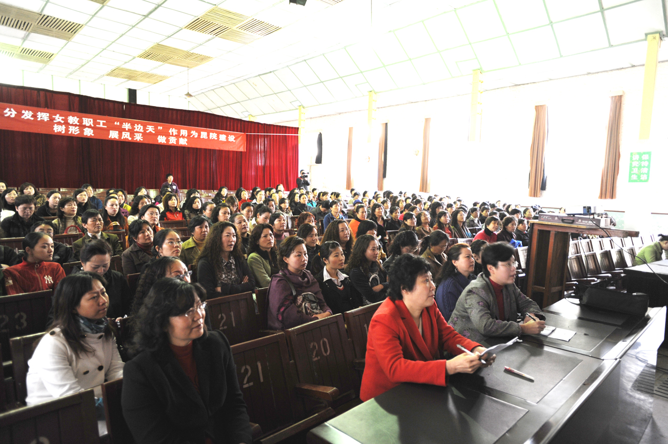 讲座结束后,省妇联和红梅副主席、省妇联办公室主任计关琴、昆明市政协副主席、昆明市妇联主席陆玉珍等省市领导到会看望了我院女教职工,并做了热情洋溢的讲话。省市妇联领导在肯定了我院女教职工长期以来为学院发展以及新昆明建设所作的贡献之后,还鼓励我院女教职工继续担好“半边天”的责任,贡献自己力量。熊副院长在简单介绍了我院女教职工在全院工作中所起到的作用后,还对女教职工提出了自信自强、积极进取、为人师表、以身作则和善待自己、珍爱自己的要求。