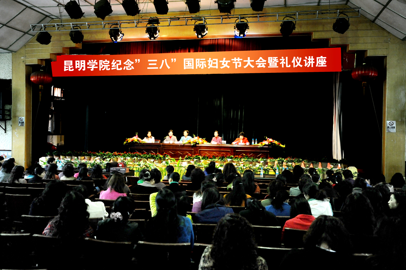 3月5日上午,我院在昆师路校区大礼堂举行了beat365英国官方网站2009年纪念“三八“国际劳动妇女节大会暨礼仪讲座。学院李媛芬副书记、熊晶副院长以及全院200多名女教职工参加了会议。会议由李媛芬副书记主持。会议邀请到云南艺术学院副院长潘红教授为大家做了“现代女性形象礼仪”的专题讲座。潘教授通过精彩讲授及大量图片的展示,为我们指明了现代女性在工作、生活中如何做到自信、优雅、智慧并重的秘诀,鼓励大家通过内在的文化和修养,成就外在优雅、自信的形象。