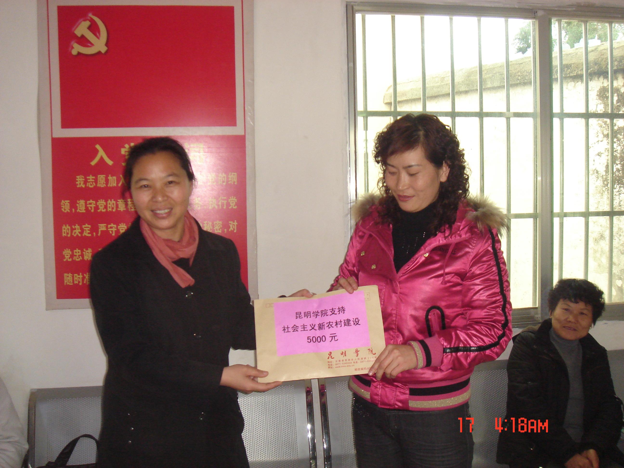 12月17日,根据学院工作布置,院工会、社会科学与人力资源系和图书馆相关负责人及教师前往宜良县北古城镇陈家渡村,看望社会科学与人力资源系驻该村新农村建设指导员余一夫同志,并进行新农村建设调研活动。