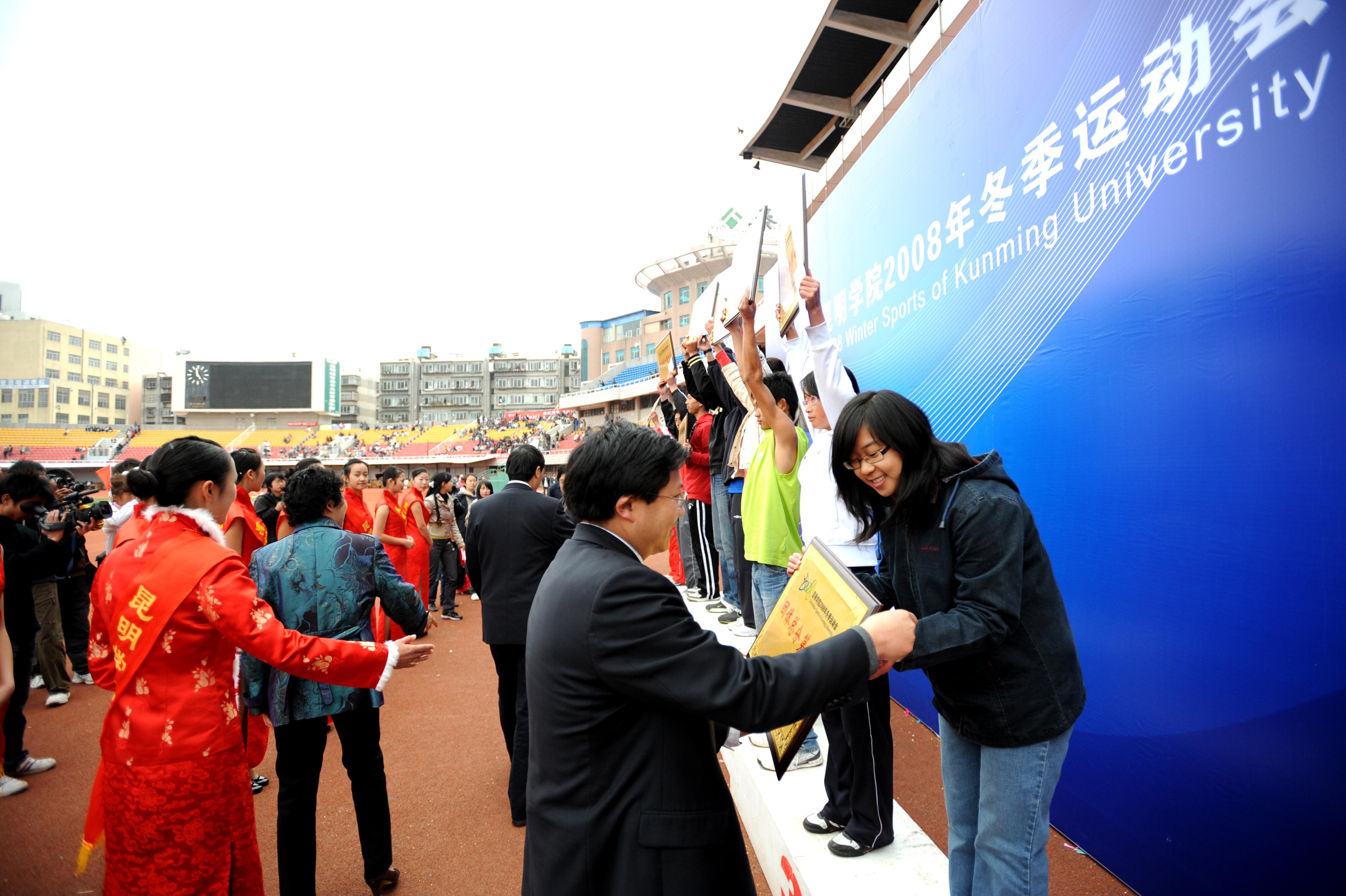 11月29日下午,我院2008年冬季运动会在昆明市体育场胜利闭幕。为期三天的运动会共决出49个集体和个人比赛项目的奖牌,其中六人次打破了院记录。
