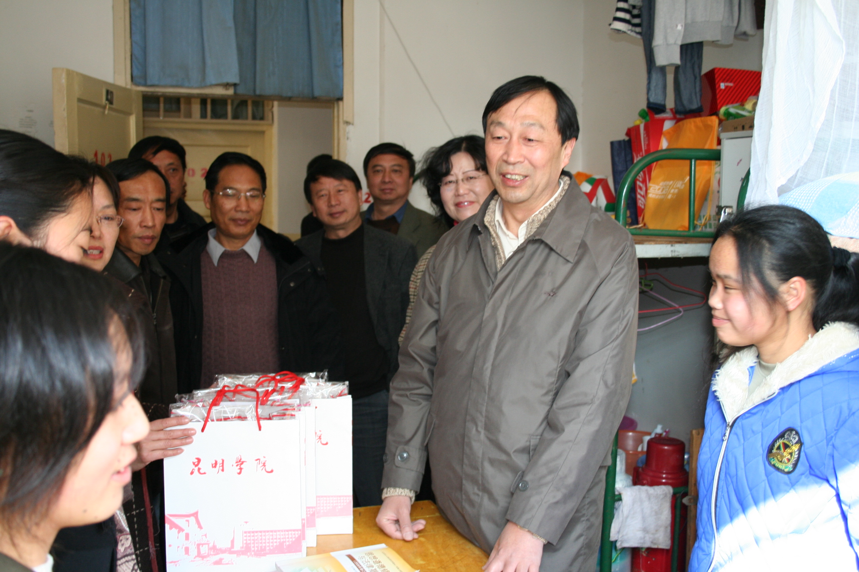 本次“情系学子送温暖”活动在我院五个校区同时开展,梁晓谷书记、陈世波院长、孙勇副书记、李媛芬副书记、陈兆雄副院长、熊晶副院长、罗明东副院长携相关职能部门的负责人分赴昆师路校区、人民西路校区、龙泉路校区、体院路校区、新迎路校区,走访学生宿舍,深入了解学生生活情况,并将冬衣送到了463名家庭经济困难学生手中。希望我院的青年学子将关爱化作学习的动力,勇敢自信,积极乐观,奋发向上。