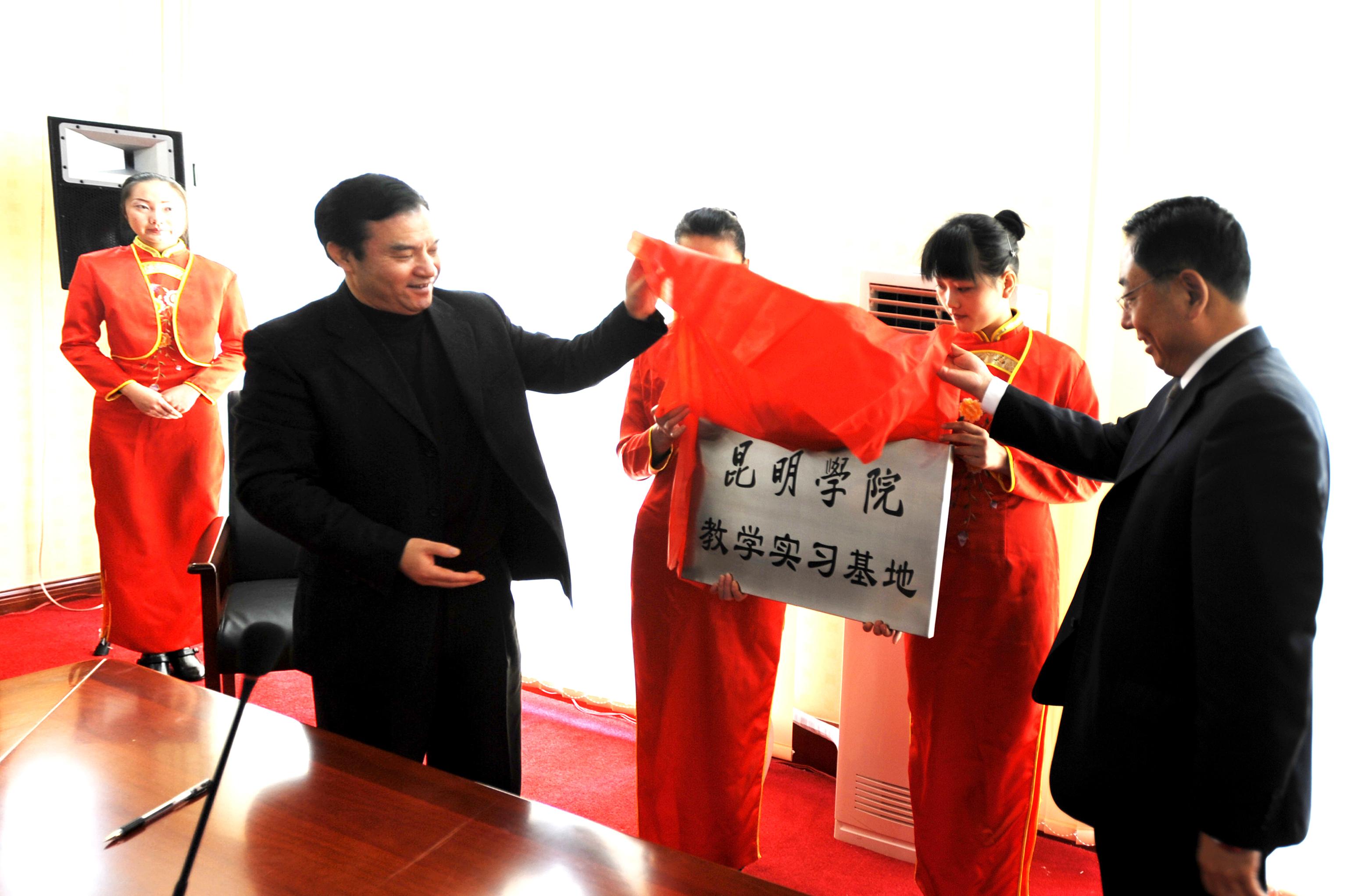 授牌仪式由兵器工业疗养院院长助理王维志同志主持。我院罗明东副院长与兵器工业疗养院蔡德珍书记签署了《beat365英国官方网站与兵器工业昆明疗养院共建教学实习基地协议》。梁晓谷书记与兵器工业昆明疗养院的张永贵院长进行了揭牌仪式。仪式上陈世波院长和兵器工业昆明疗养院蔡德珍书记分别作了讲话。