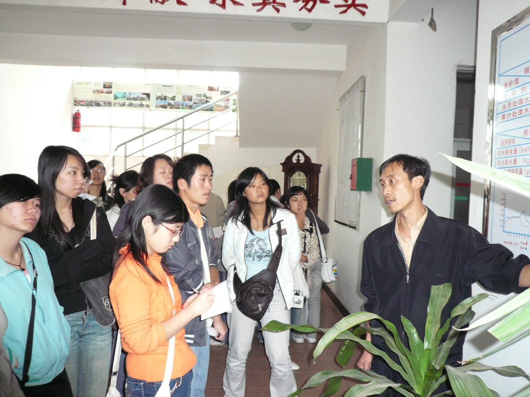 11月初,大多数同学参观了位于北市区的昆明第五污水处理厂。同学们观看了污水处理的整个流程,感触良多。从进水口那混浊难闻、上面漂浮着一些生活垃圾,腐烂的树叶的污水经过一系列的生化反映、沉沙等十几道工序,才能达到排放标准的微污染水,要经过二十个小时左右的循环。同学们感到“震撼”,受到了一次“节约用水”的深刻教育。工程师介绍了昆明污水处理的严峻形势,昆明目前六个污水处理厂每天24小时不间断运转却只能对80%的污水进行处理。昆明污水处理的现状令同学们担心。随着城市化进程的加快,污水的产生也会越来越多。同学们从心底地发出“珍惜水资源”的呐喊。由此深切认识到坚持科学发展观,建设资源节约型、环境友好型社会、在全社会树立生态文明观念的紧迫性和重要性。