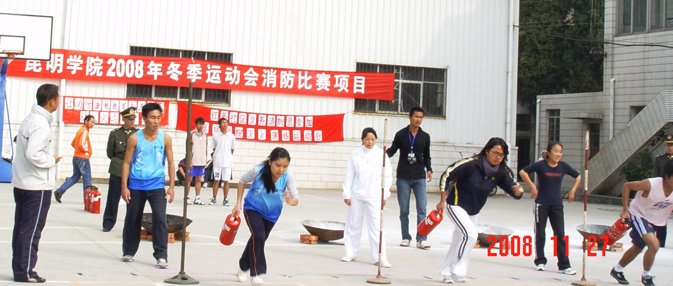 为提高全院师生的消防安全意识,让消防走进心中,让责任变成行动,2008年11月27日上午11:00,我院消防比赛在人民西路校区西院篮球场上正式拉开帷幕,两个消防项目以崭新的面貌在我院冬季运动会中首次亮相。学院领导非常重视此次消防项目比赛,陈兆雄副院长亲临现场指导工作,学院相关部门负责人和龙翔街道办事处综治办、红菱社区居委会工作人员一起观看了比赛。
