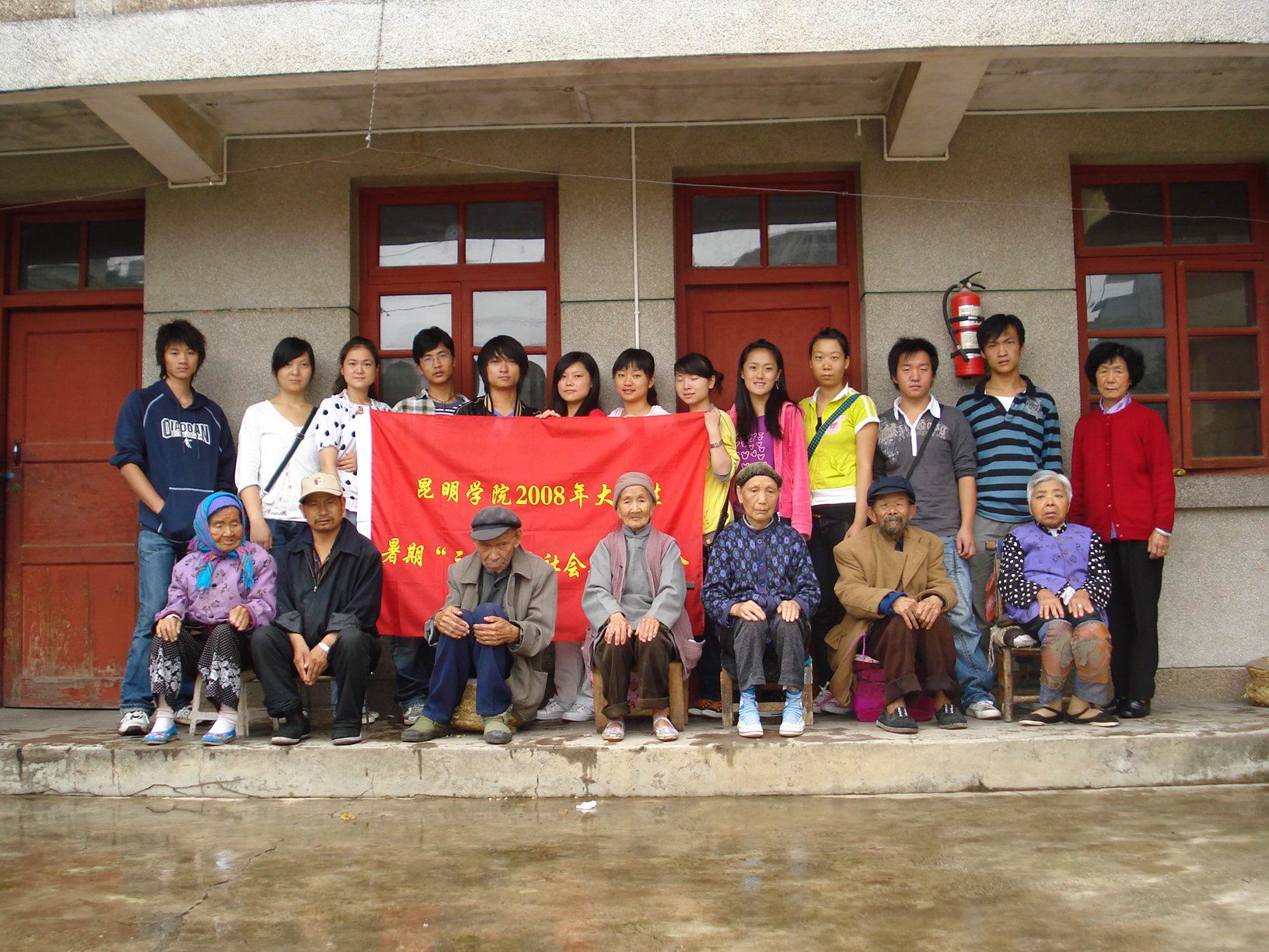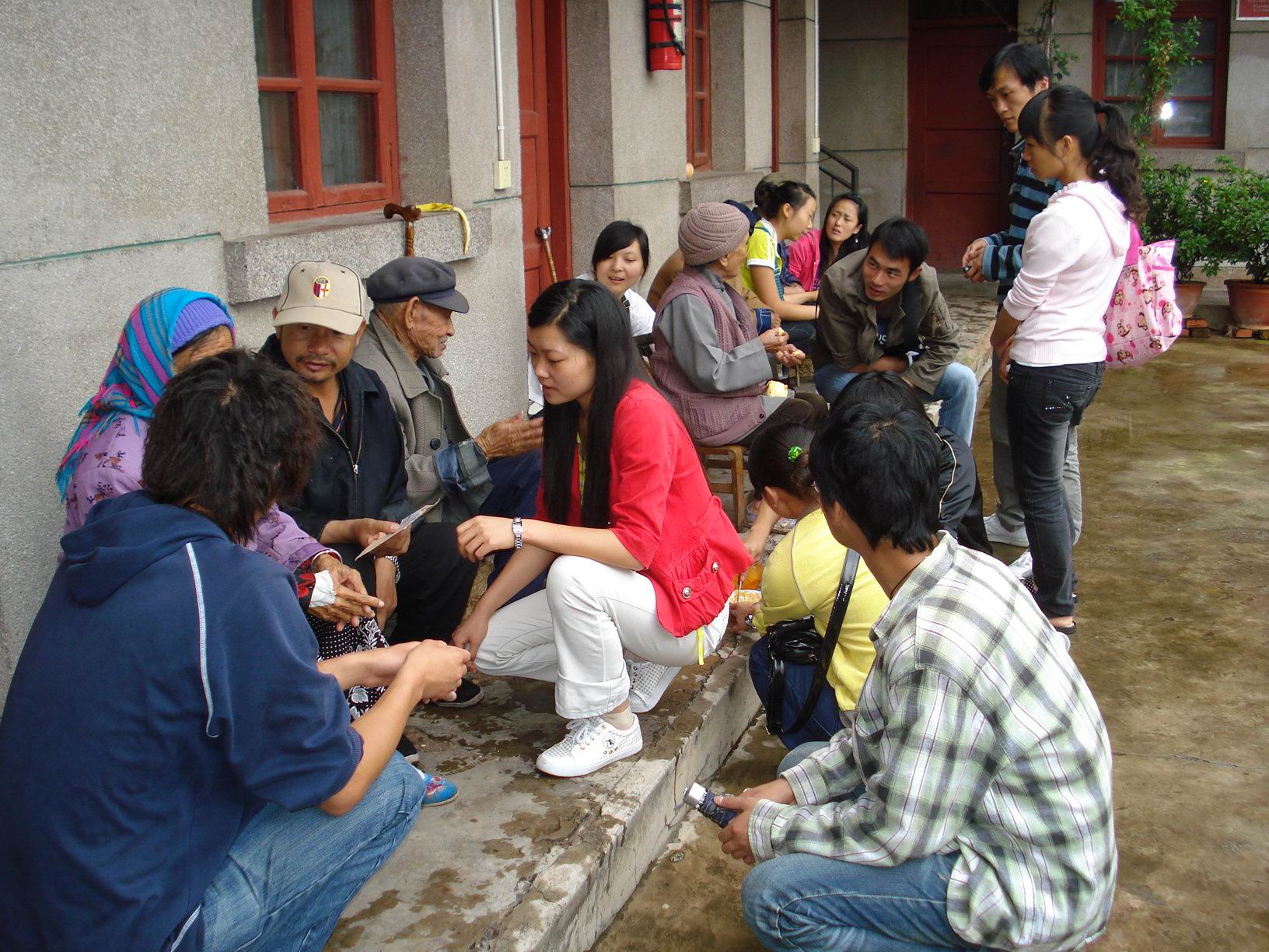 与敬老院老人合影