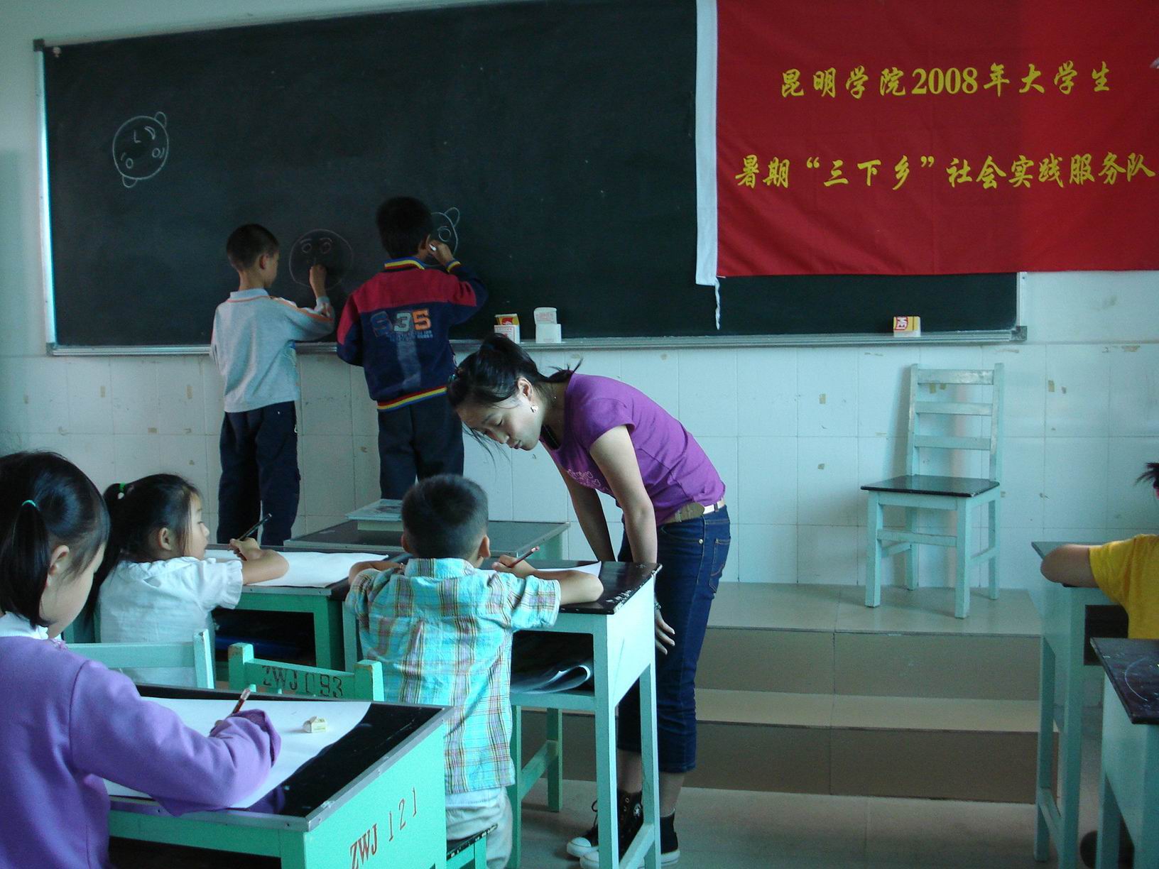 生物系寻甸县鸡街乡水稻、烤烟的病虫害调查和防治科技兴农服务团带领同学们深入田间地头,实地了解水稻选育工作的流程,调查当地农作物的病虫害现状,并现场为农户宣传和教授常见病虫害的预防和处理的知识,让同学们学以致用,实现理论和实践的结合;美术系暑期专业考察支教助教服务团选择玉溪市澄江县第一中学为服务基地,并对当地的教育、经济发展状况、民风民情等方面展开了为期8天的支教助教、宣传考察及爱心服务等活动;初等教育系初教毕业生就业情况跟踪调查团赴曲靖会泽、昭通鲁甸、昆明