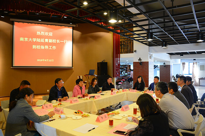 4月12日,南京大学陆延青副校长一行到beat365官网调研。beat365官网校长黎素梅,副校长马银海热情接待陆延青副校长一行并与来宾进行交流座谈。