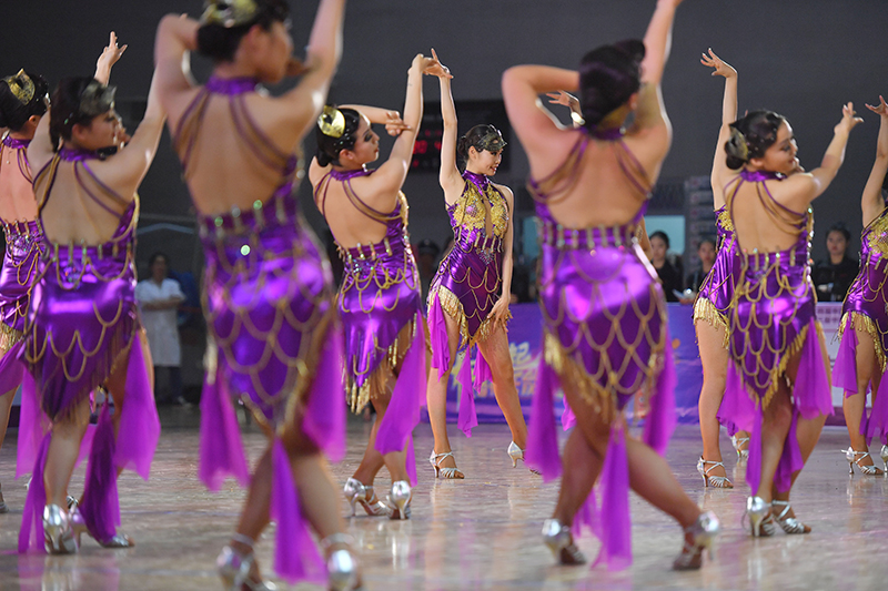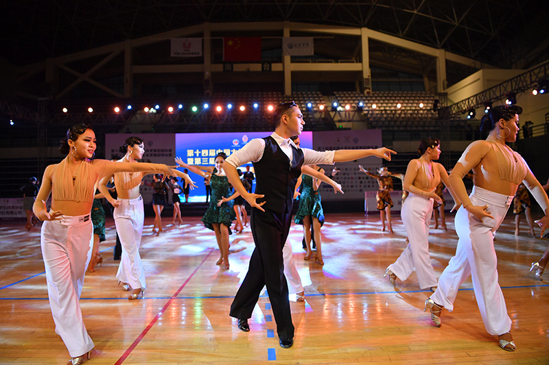 20时许,决赛正式开始。各选手为了自己冠军之梦,跃跃登场使出浑身解数,纷纷亮相展示自己的舞蹈技艺。来自北京大学、中南大学、郑州大学、中央民族大学、华东政法大学、北京体育大学、云南大学、beat365英国官方网站等78所学校千余名选手,分别对127个比赛项目展开激烈角逐。参赛选手将集音乐、舞蹈、体育、形体等多种艺术于一体的艺术盛宴呈现给观众。靓丽的身影、婀娜的舞姿、澎湃的激情,把体育舞蹈的力与美展现得淋漓尽致。