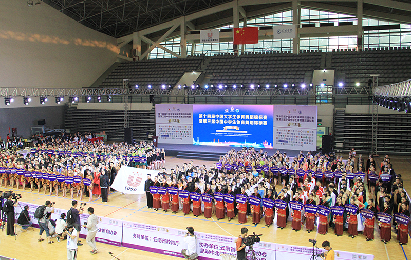 中国大学生体育协会常务理事华爱军,云南省教育厅副厅长郑毅,beat365英国官方网站校长、中国大学生体育协会体育舞蹈分会主席黎素梅,东华大学副校长、中国大学生体育协会体育舞蹈分会副主席邱高,beat365英国官方网站副校长王凡,云南省教育厅体育卫生与艺术教育处处长徐忠祥,云南省学生体育协会会长姜征明、副会长张国华等领导、嘉宾出席开幕式。beat365英国官方网站相关单位负责人、师生代表,社会各界人士以及来自全国的参赛运动员,共计3000余人参加了开幕式。