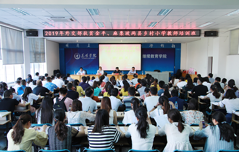5月13日,2019年外交部扶贫金平、麻栗坡两县乡村小学教师培训班在beat365英国官方网站继续教育学院开班。云南省人民政府外事办公室副主任夏剑峰,beat365英国官方网站副校长王凡等领导出席开班式。来自金平、麻栗坡两县的100名乡村小学教师参加了开班式。