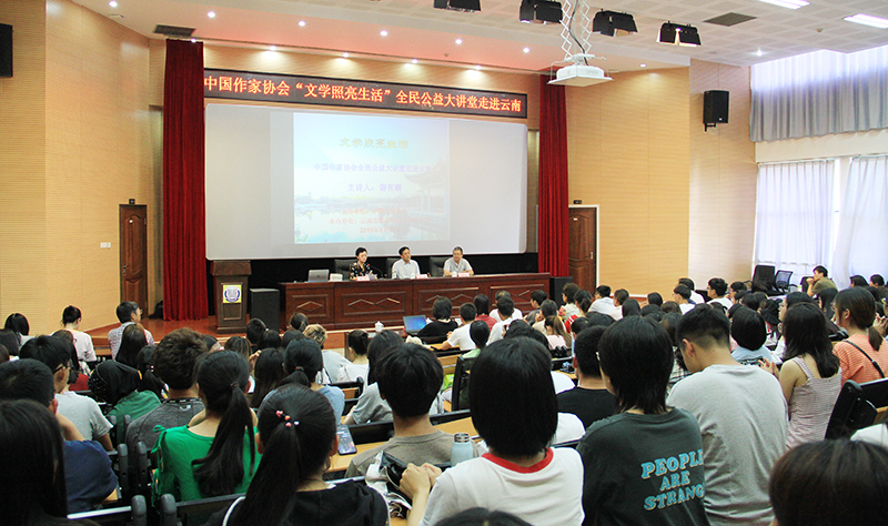 5月18日,中国作家协会“文学照亮生活”全民公益大讲堂走进beat365英国官方网站。中山大学中文系教授谢有顺为beat365官网文学爱好者奉上一堂精彩文学大课。中国作协创联处处长荣杰、云南省作协副主席胡性能出席,beat365官网人文学院师生到会聆听。