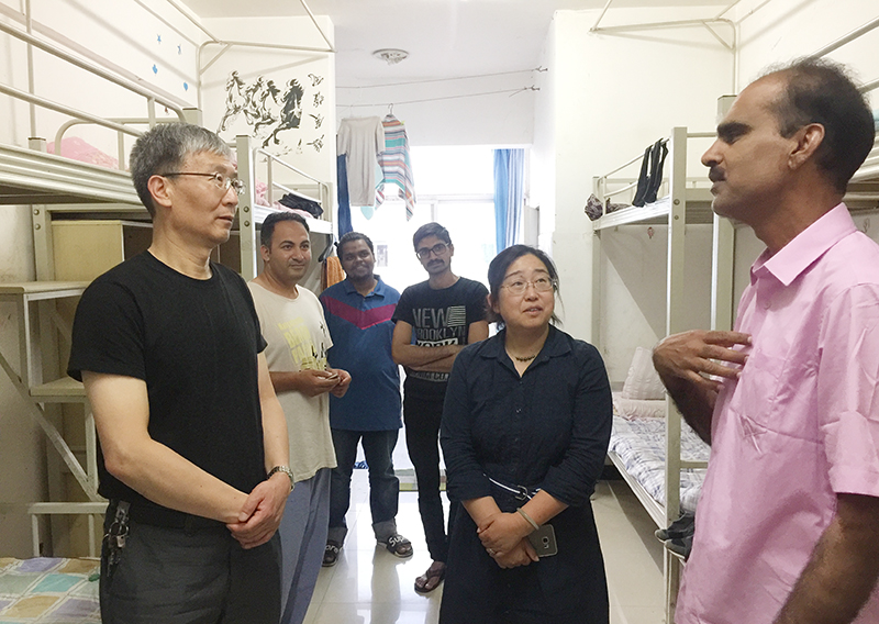 5月14日,董建华副校长来到国际学院听取学院近期工作情况汇报后,对下一步留学生招生、教学及管理提出要求,要求国际学院在留学生工作中注重质量,稳步前进。来到留学生宿舍,董建华副校长与留学生亲切交谈,仔细询问留学生在beat365官网的学习、生活情况,认真听取同学们对学习和生活等方面的意见和建议,勉励留学生珍惜青春、发奋学习。留学生对董建华副校长的关心表示感谢,并即兴为董副校长表演了吉他弹唱。