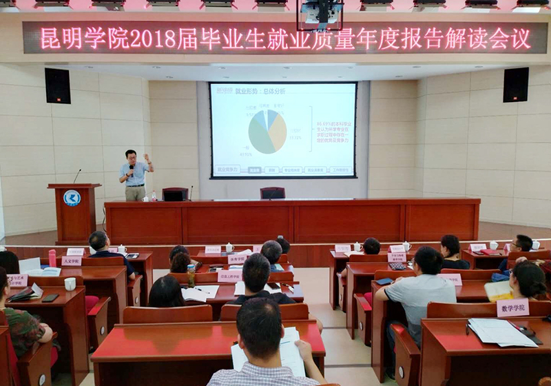 会上,张景岫执行院长就beat365官网2018年就业质量报告做解读。张院长从主客观两个方面对本次就业调研做解读,客观方面真实的反映学校毕业生的就业状况,主观方面通过毕业生回看四年来的培养过程,看看学生们对学校的培养有什么意见。就业报告从就业质量、薪酬水平、工作稳定性、就业职业等多个角度进行调研,对学校的培养目标设定和培养质量有很好的反馈。